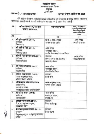 मध्यप्रदेश सरकार ने 12 जिलों के कलेक्टर बदले, कुल 24 आइएएस अफसरों का तबादला, भिंड समेत कई जिलों में विवाद में घिरे कलेक्टरों को हटाया.