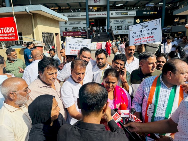 सूरत शहर कांग्रेस समिति ने कपड़ा बाज़ार क्षेत्र में "वोट चोर-गद्दी छोड़ो" और "मारो वोट, मारो अधिकार" अभियान के तहत व्यापक हस्ताक्षर अभियान आयोजित किया। मिलेनियम मार्केट से शिव शक्ति मार्केट तक इस अभियान में व्यापारी, कर्मचारी, स्टाफ और मजदूरों ने बढ़-चढ़कर हिस्सा लिया।